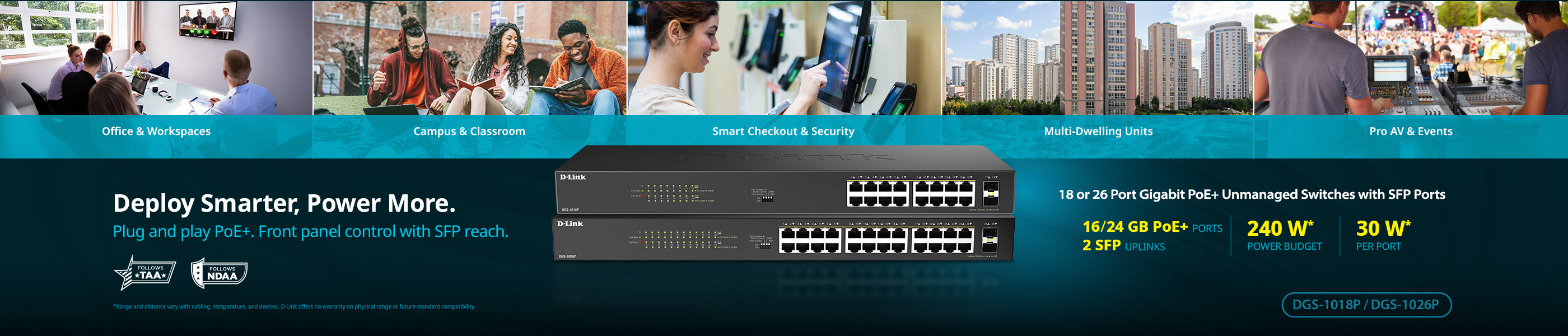 Help get more from your Gigabit+ internet connection with a Multi-Gigabit switch. Designed for high-demand homes and multi-dwelling unit (MDU) deployments alike. Help support smoother streaming, faster file transfers, and consistent connectivity for Wi-Fi 6 access points, while helping property managers deliver consistent, high-performance networking across multiple units and shared spaces.
