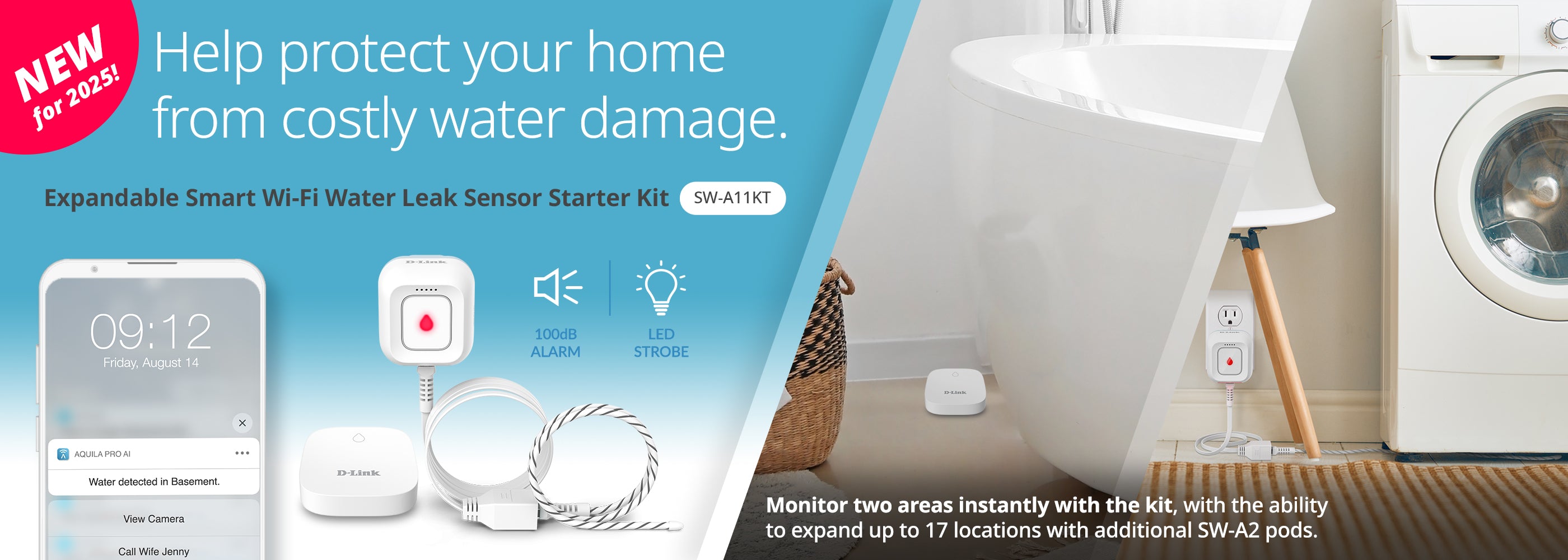 Detect leaks before costly damage occurs. Get notifications as soon as a leak is detected with visual, audible, & mobile alarm notifications.