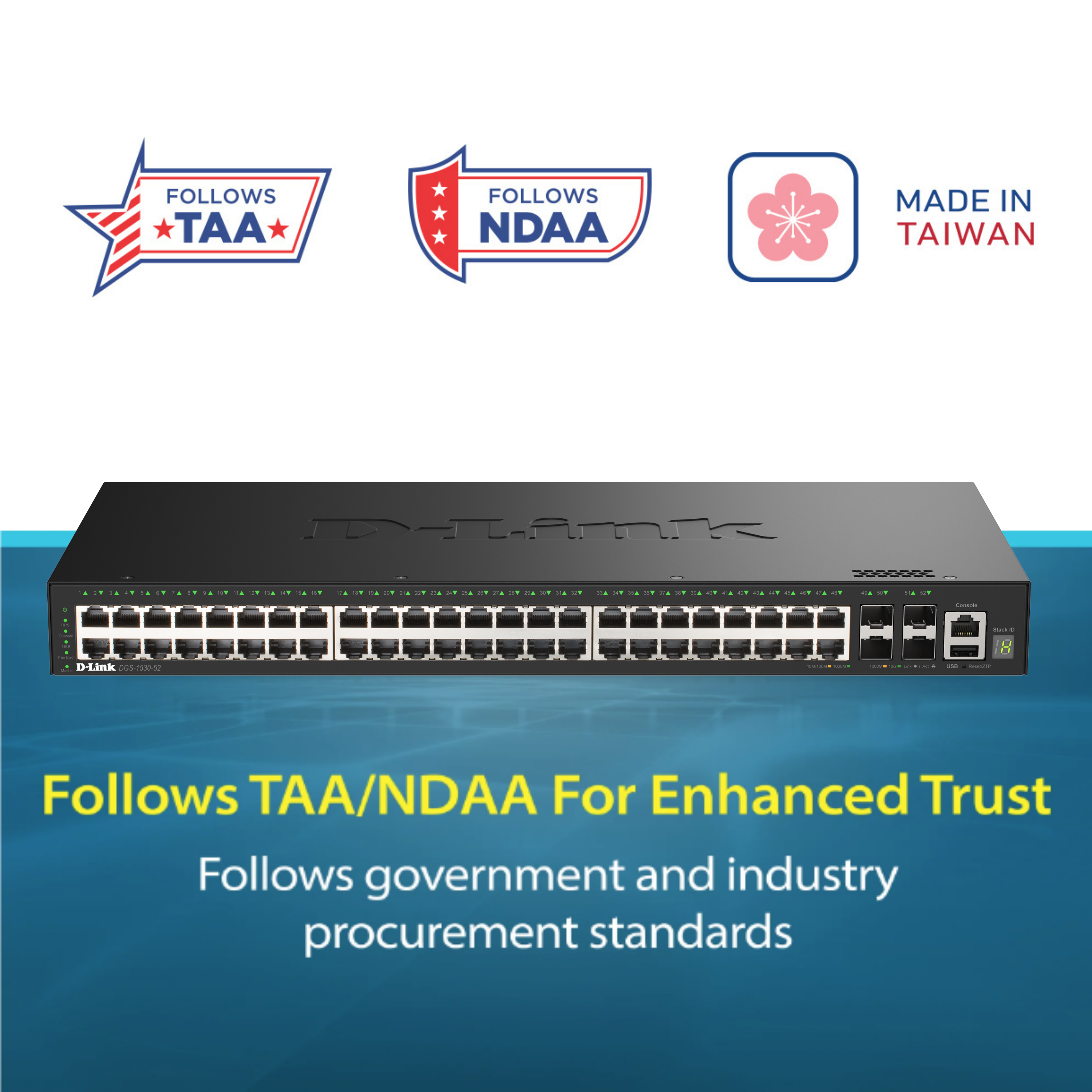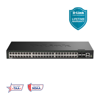 D-Link 52-Port Gigabit Stackable Managed Ethernet Switch with 10GbE Uplinks (DGS-1530-52) | 48x 1GbE Ports + 4x 10GbE SFP+ Ports, L3 Lite, VLANs, Rackmount, Follows NDAA/TAA