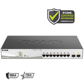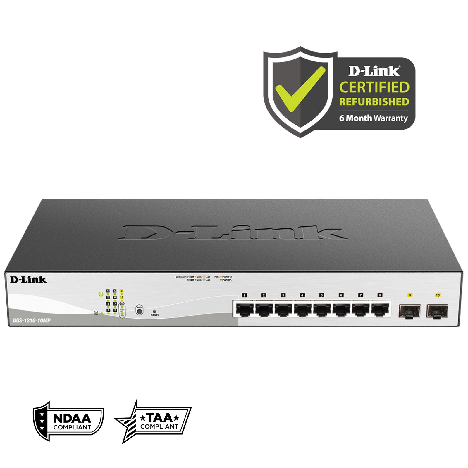 D-Link [Certified Refurbished] 10-Port Gigabit Smart Managed PoE+ Switch (DGS-1210-10MP/RE) 8 PoE+ Ports (130W) + 2 Optical SFP Ports | L3 Lite | NDAA/TAA Compliant
