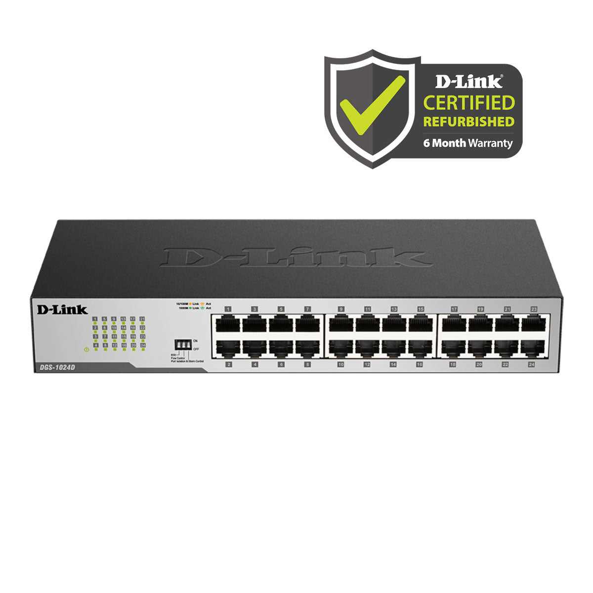 D-Link [Certified Refurbished] 24-Port Gigabit Unmanaged (DGS-1024D/RE) Plug and Play Switch | Fanless | Metal Compact | Desktop/Rackmount