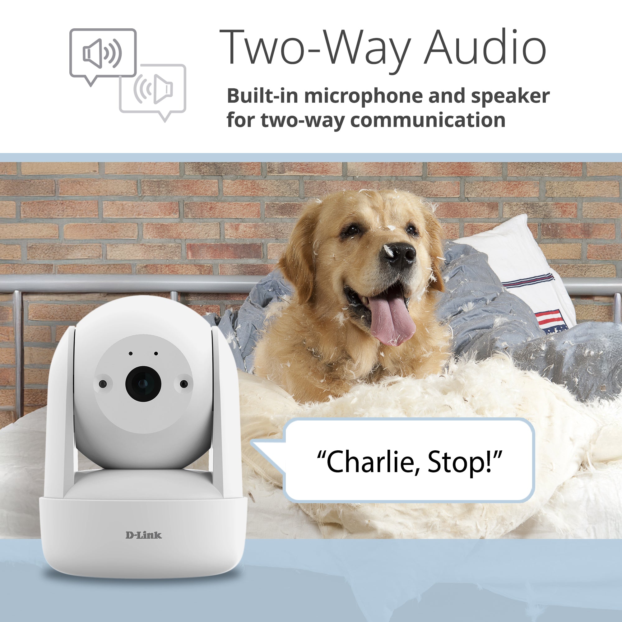 Keep an eye on what matters most with the D-Link 2K Pan & Tilt Wi-Fi 6 Camera (DCS-6501LH). Featuring crisp 2K 1296p resolution, this smart security camera delivers sharp, detailed video and lets you pan and tilt remotely to cover wide areas—perfect for monitoring large rooms or tracking active pets. Enjoy powerful night vision up to 26 feet in complete darkness and advanced features like auto motion tracking and smart alerts triggered by sound or movement. With built-in two-way audio, you can listen and talk through the camera, while support for WPA3™ encryption helps enhance Wi-Fi security. Easily connect to your home Wi-Fi with no monthly fees or subscriptions, and store footage your way using local microSD storage or optional cloud recording. Control it all through the free mydlink app or hands-free via Amazon Alexa or Google Assistant.