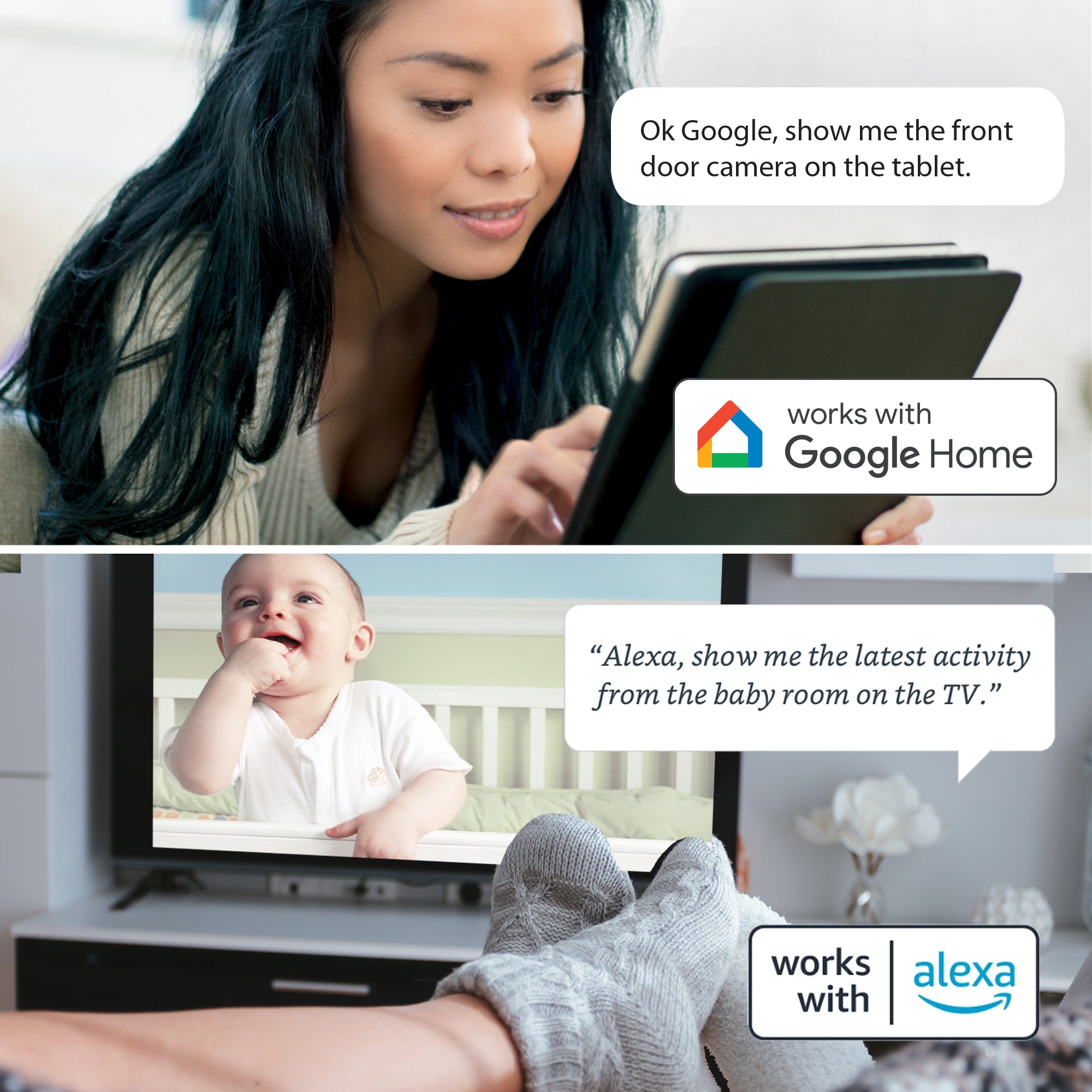 You can access your camera's live feeds simply using just your voice with Alexa or Google Assistant-enabled devices, so you can easily view what's happening at home when your hands are full.