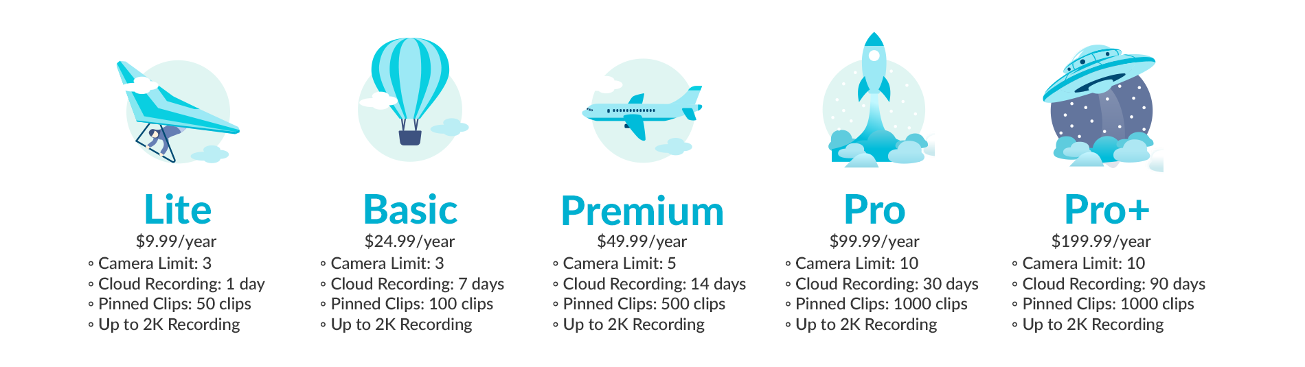 Plans vary in the number of days videos are kept in the mydlink™ Cloud and the number of cameras that can be linked to a single account.