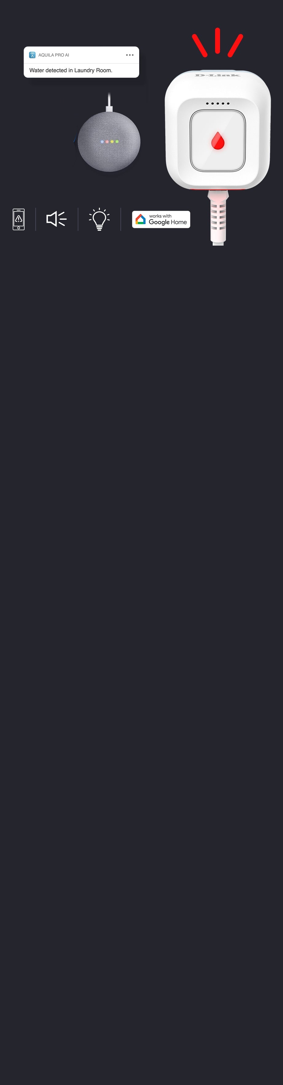 - NEW FOR 2025 - WATER LEAK DETECTION WITH MULTI-ALERT SYSTEM: When water touches a sensor, you get a phone alert, a loud 100dB siren sounds, an LED strobe flashes, and you can even have your Google Assistant announce the leak.