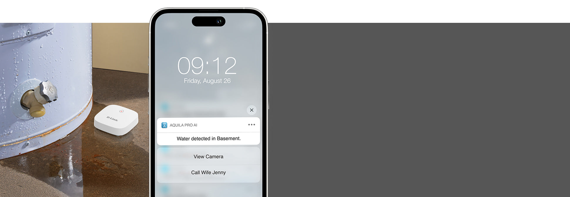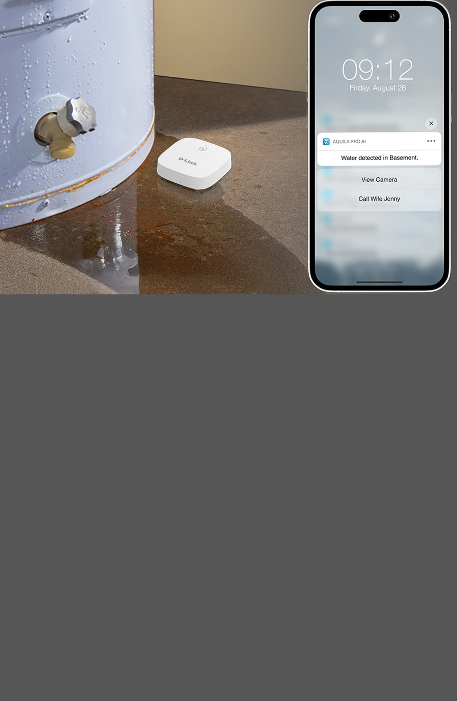The SW-A11KT works with the AQUILA PRO AI app, which lets you monitor leak alerts, check sensor status, and manage additional D-Link smart devices—all from your smartphone.