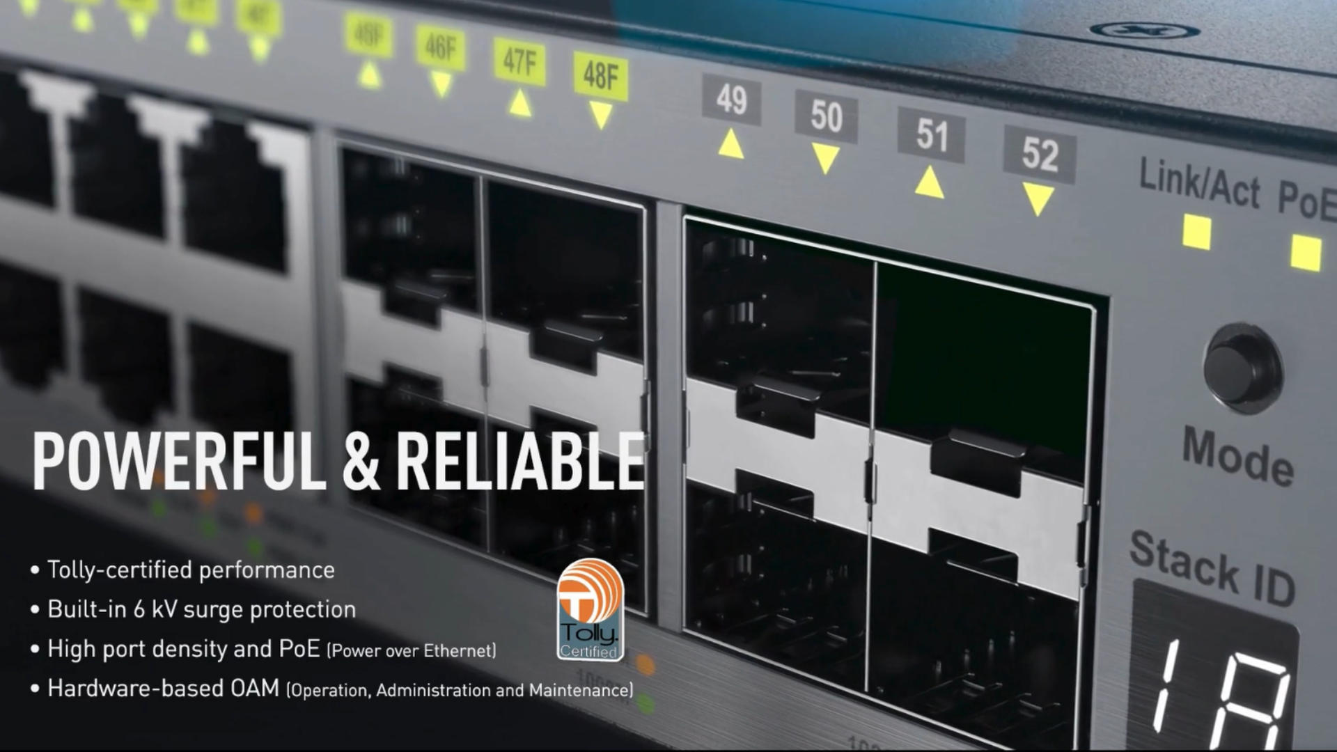 - Built-in Surge Protection: Provides 6kV surge protection across all Ethernet access ports, delivering enhanced reliability by safeguarding the network from electrical surges.